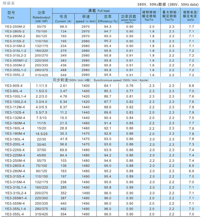本系列電動(dòng)機(jī)功率范圍:1.1~315KW;